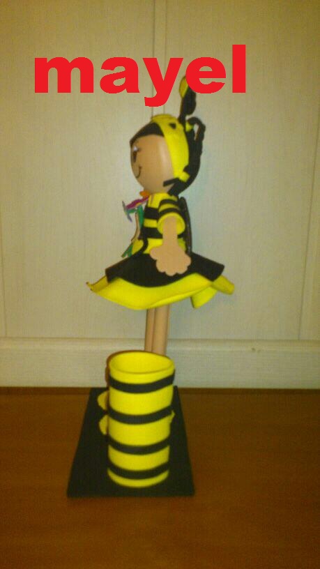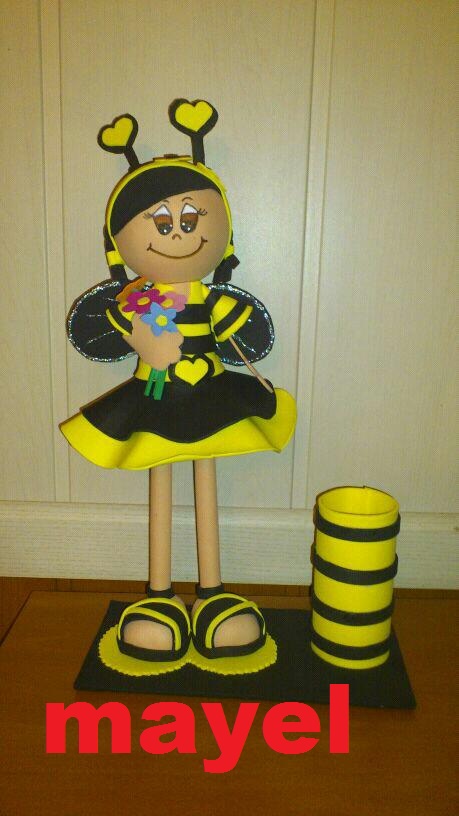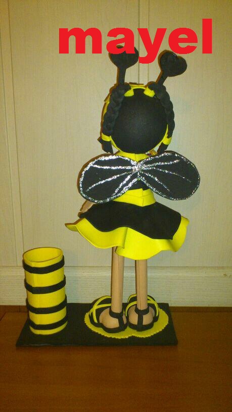 Fofucha abejita maya con portalapices, realizada en goma eva mide
