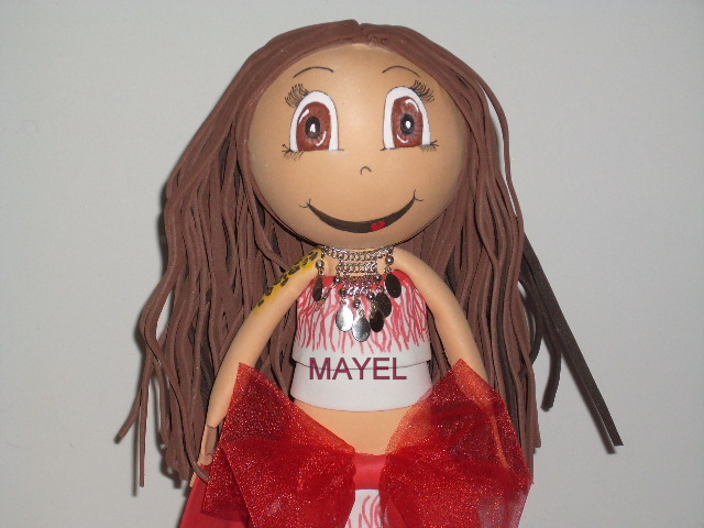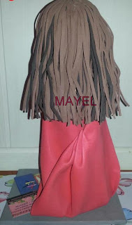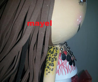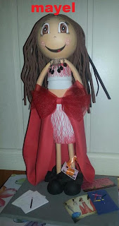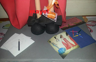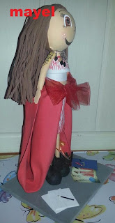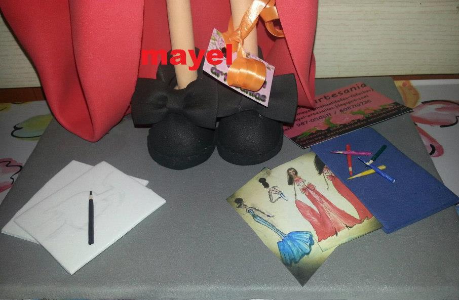 una de sus amigas nos pidió que hiciésemos una muñeca con uno de sus diseños, si os fijais es el modelo rojo que se puede ver saliéndose de la carpeta en el suelo